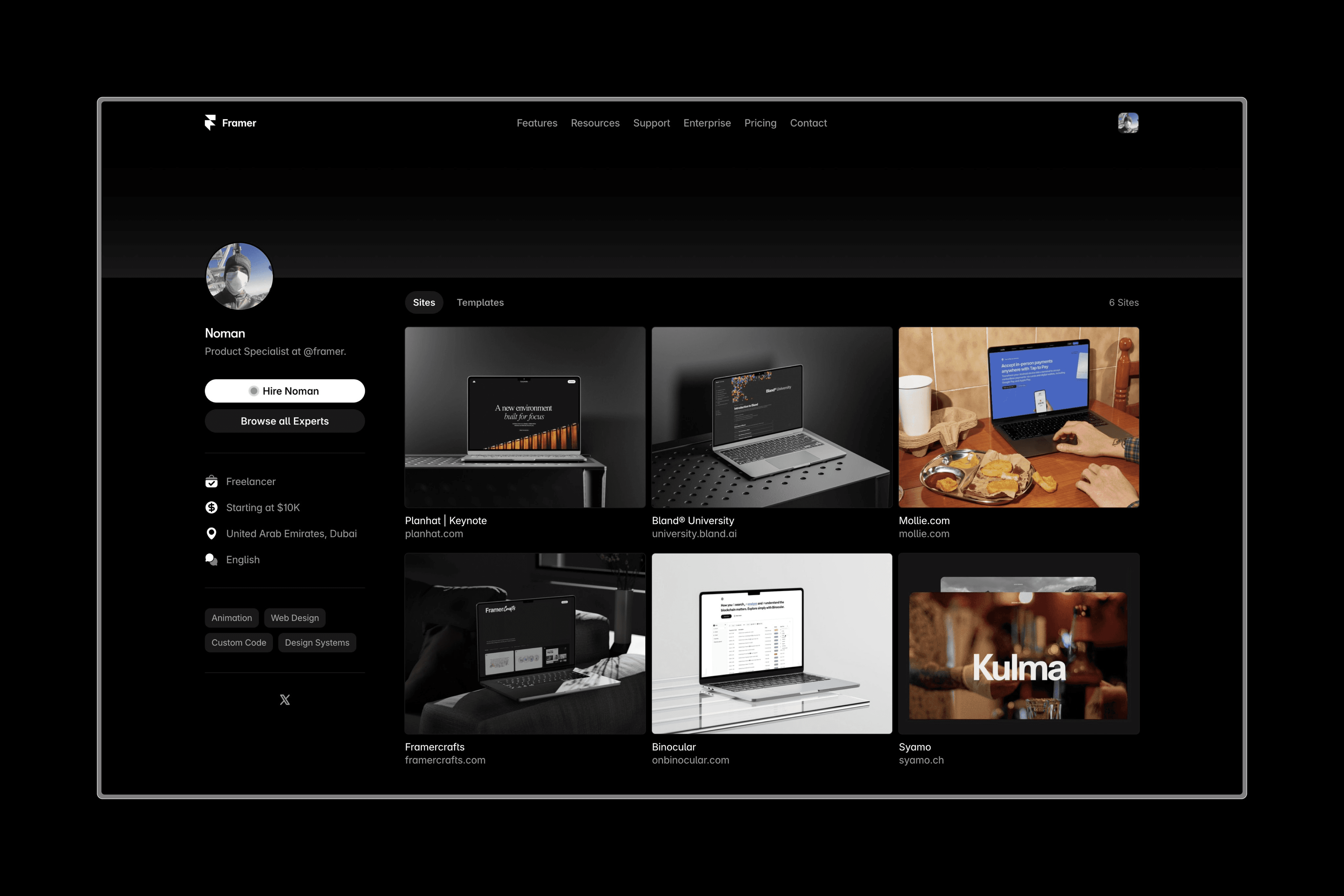 Showcase your best Framer work on your Expert profile to attract clients. Get leads sent straight to your inbox—no fees, no middleman.
