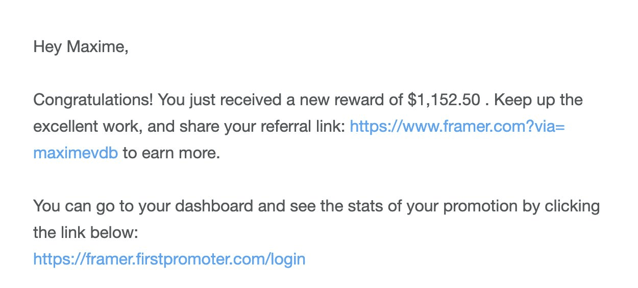 It's a great week. I had no idea what Framer was months ago. Now I'm getting partner payouts And soon launching @saltboxsupply. Exciting days indeed!