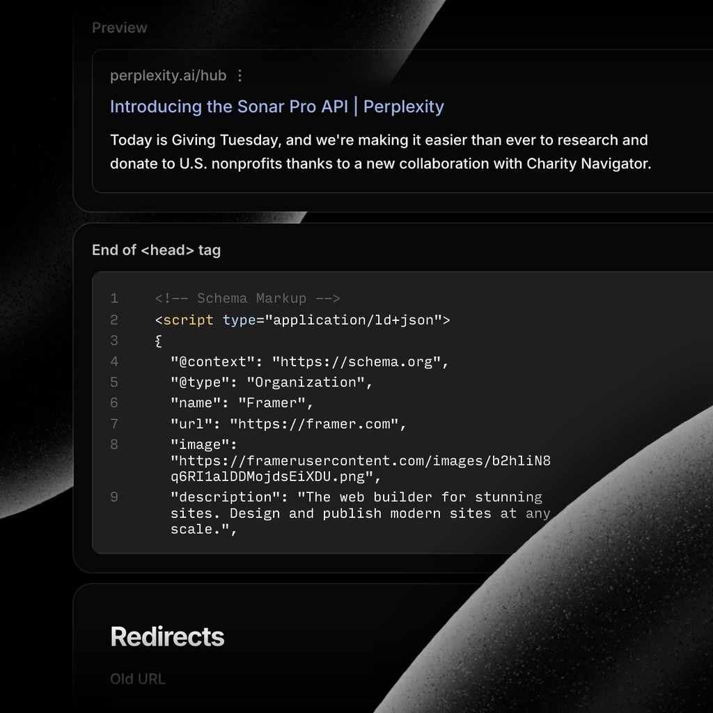 Schema markup, sitemaps, redirects, semantic tags, alt tags, indexing rules, and more—it’s all there. Plus, automated SEO that turns CMS data into meta titles and descriptions.