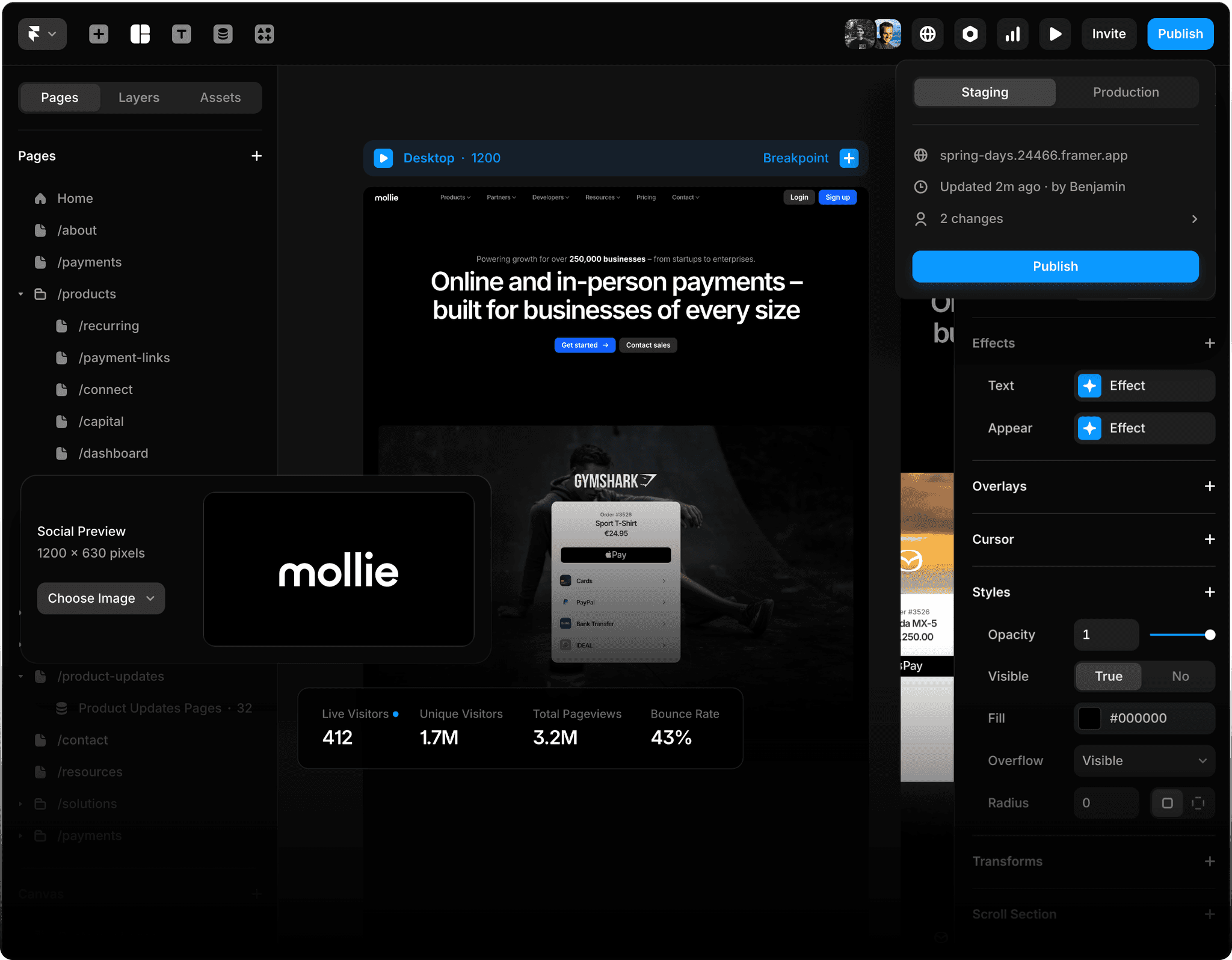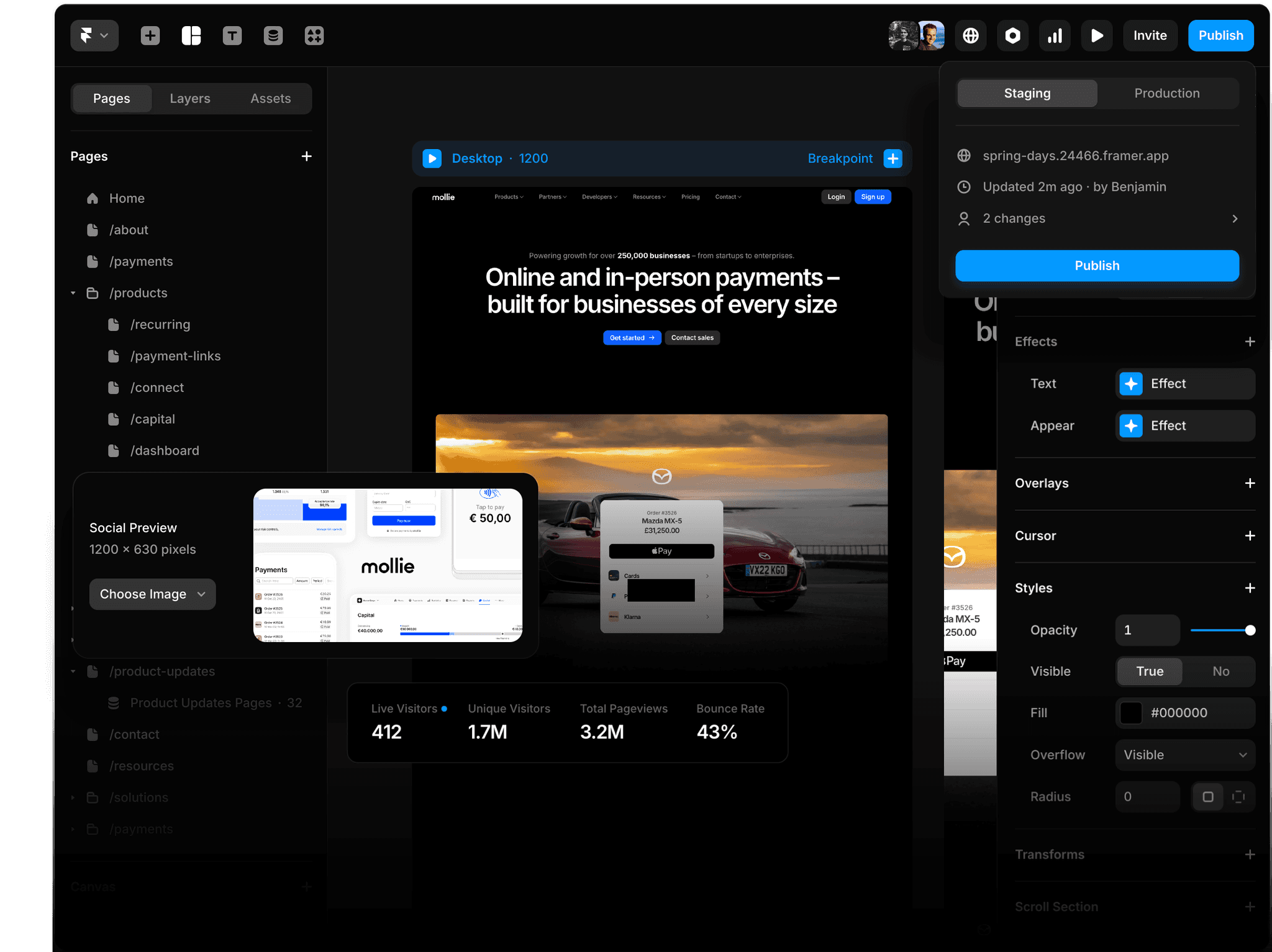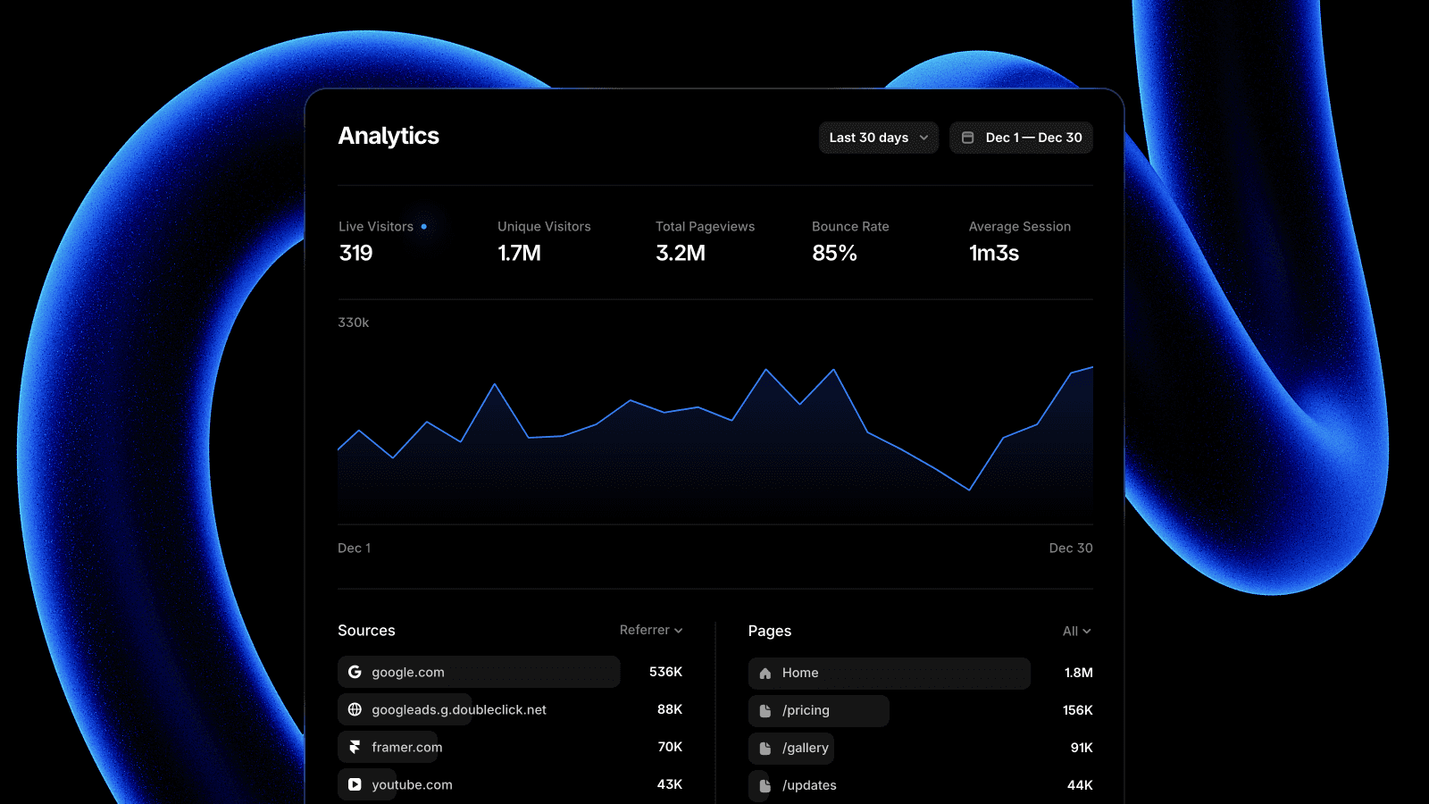 Framer’s built-in analytics now include effortless A/B testing, so you can compare versions and optimize performance — all without setup, complex dashboards, or cookie banners. Fully GDPR-compliant and privacy-first.